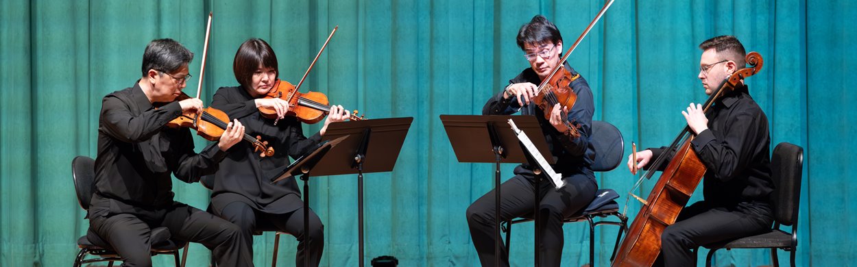 A CSO string quartet performs for students during the 2023 North American Tour.