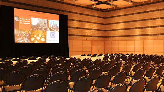 Often used for rehearsals by the Chicago Symphony Chorus and Civic Orchestra of Chicago, this contemporary space is ideal for chamber performances, seated dinners, reception, lectures, trade shows and meetings.